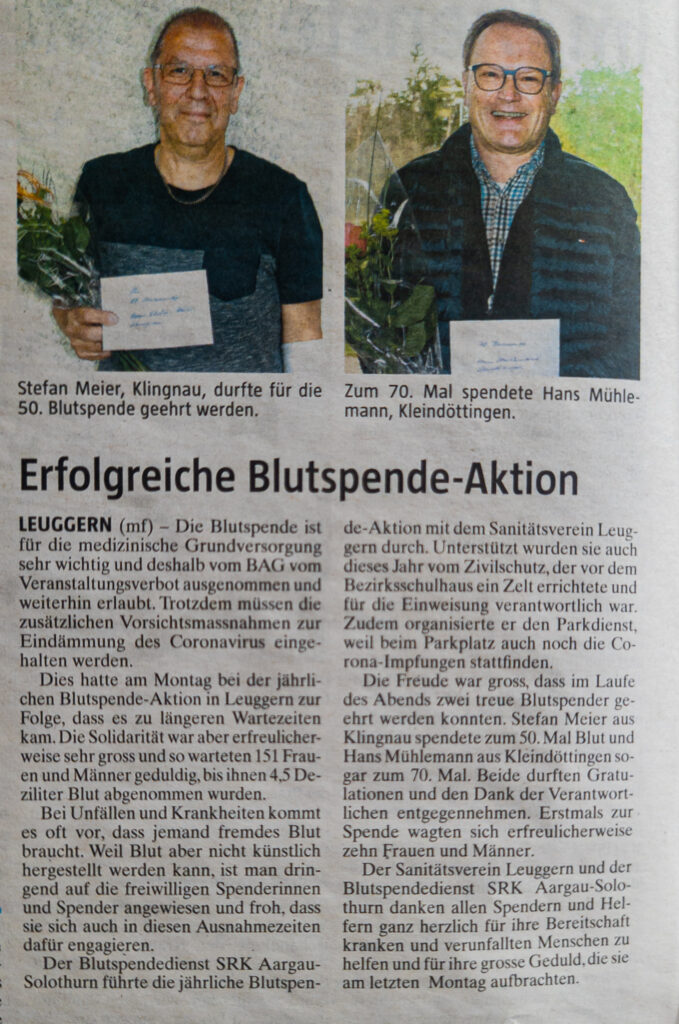 Das diesjärige Blutspenden in Leuggern wurde wieder rege genutzt. Vielen Dank an alle Teilnehmer!